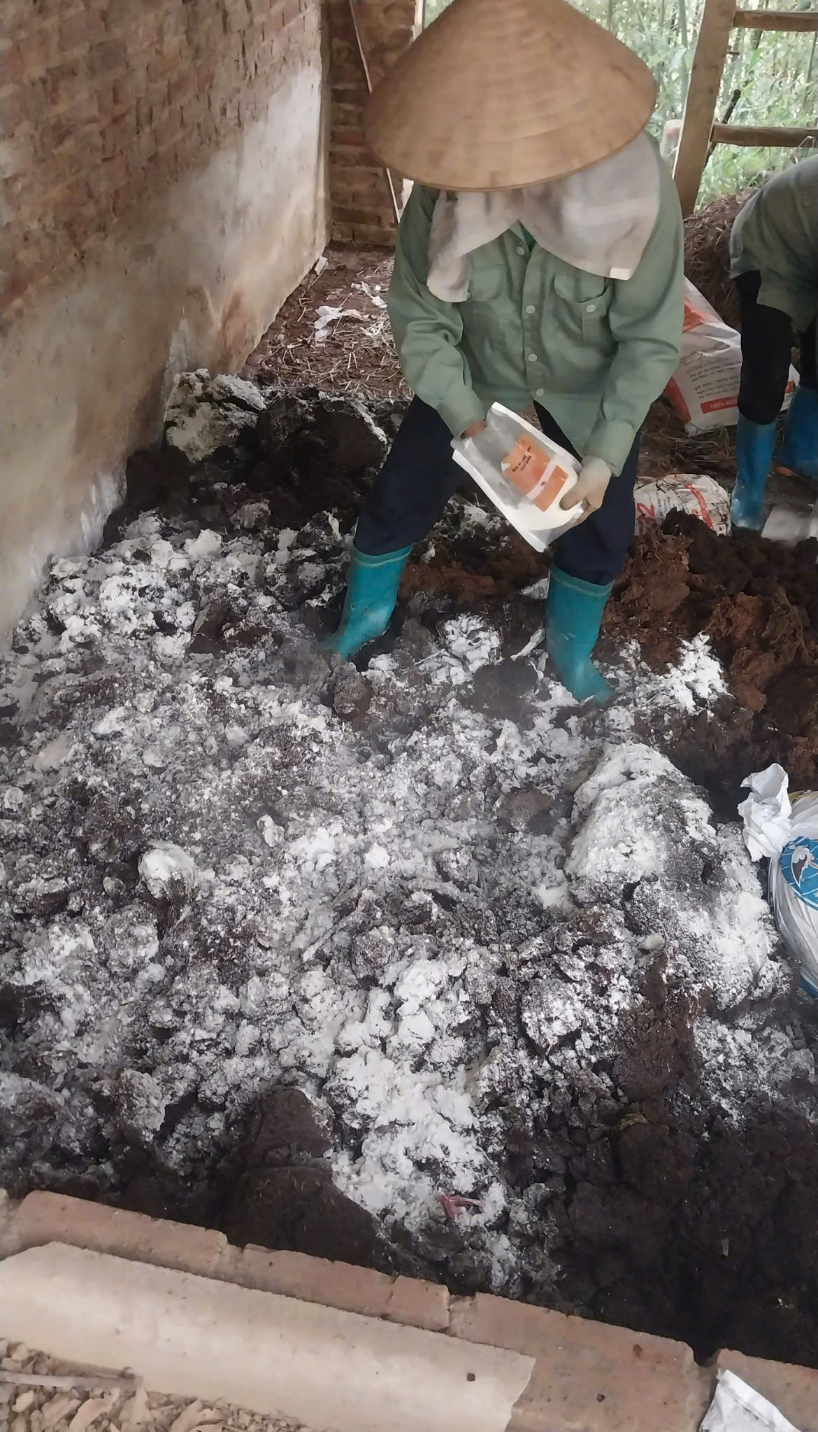 | 109 | Phân hữu cơ - Tiến hành ủ 2,5 tấn phân bò + 1ta.vôi bột + 5 túi men ủ kiến vàng. "- Trộn đều phân và vôi với nhau, sau đó cứ rải một lớp phân rồi lại rải một lớp chế phẩm vi sinh Kiến vàng. Tưới nước cho đống ủ sao cho độ ẩm đạt 50%. Dùng bạt, bao rứa để đậy kín để giữ nhiệt và độ ẩm. - Sau khoảng 15 - 20 ngày tiến hành kiểm tra, đảo trộn nếu cần và nếu nguyên liệu khô thì bổ sung nước. Dự kiến thời gian ủ từ 45 – 60 ngày." |