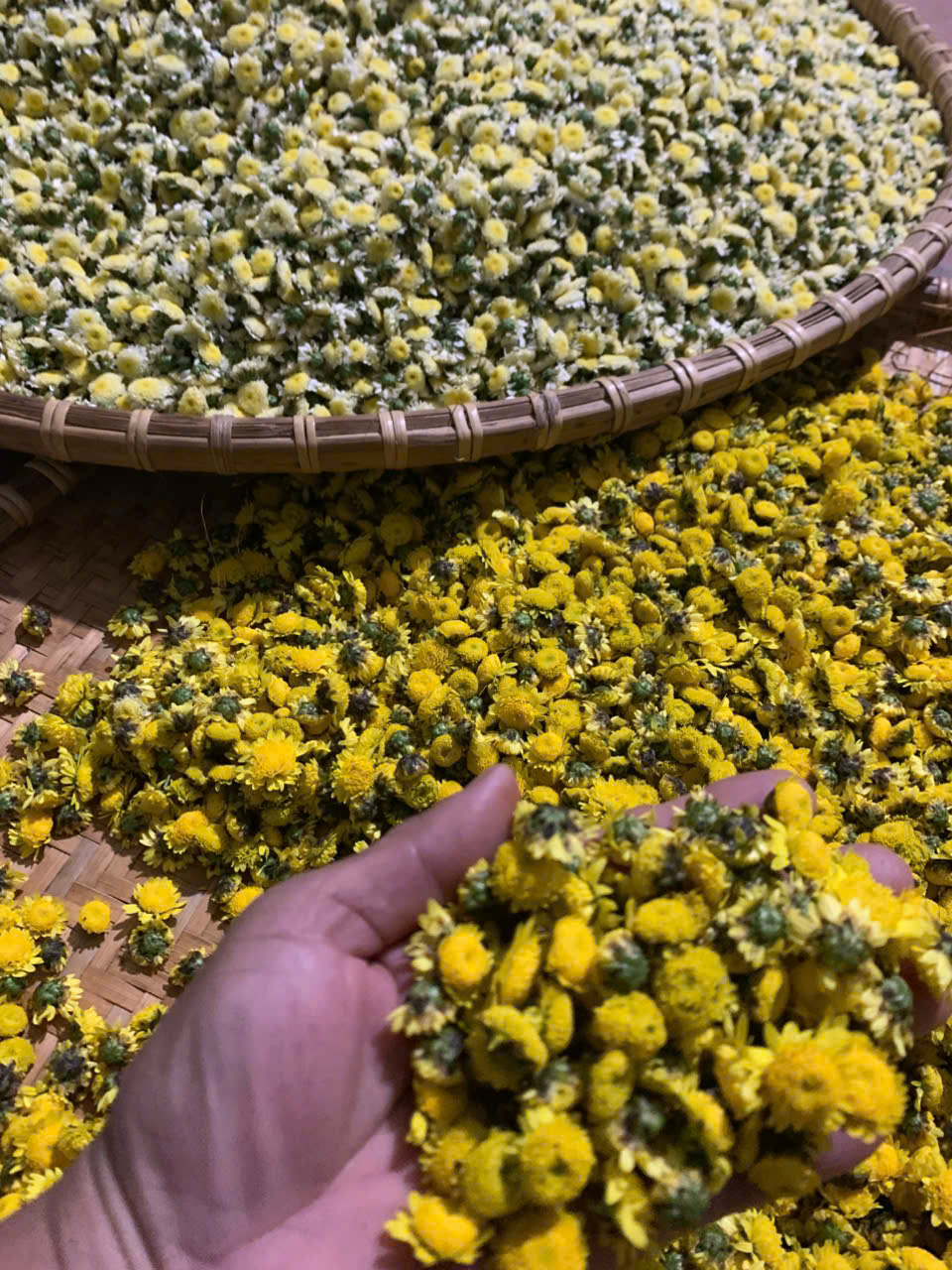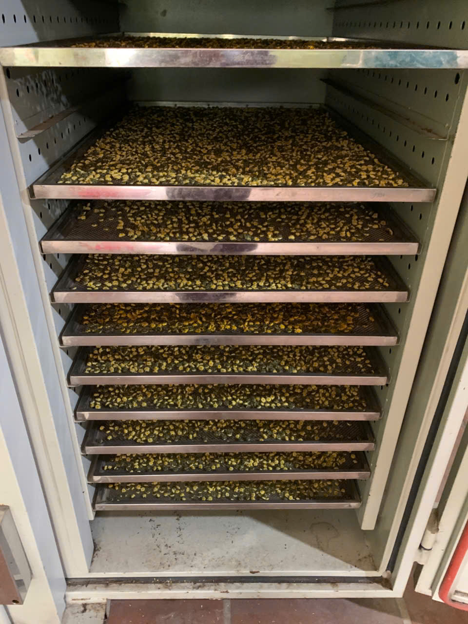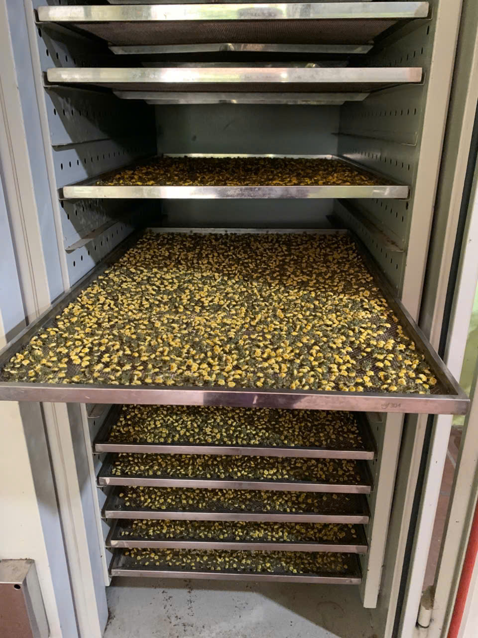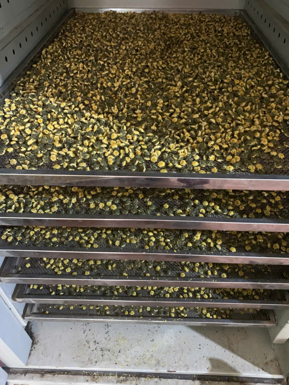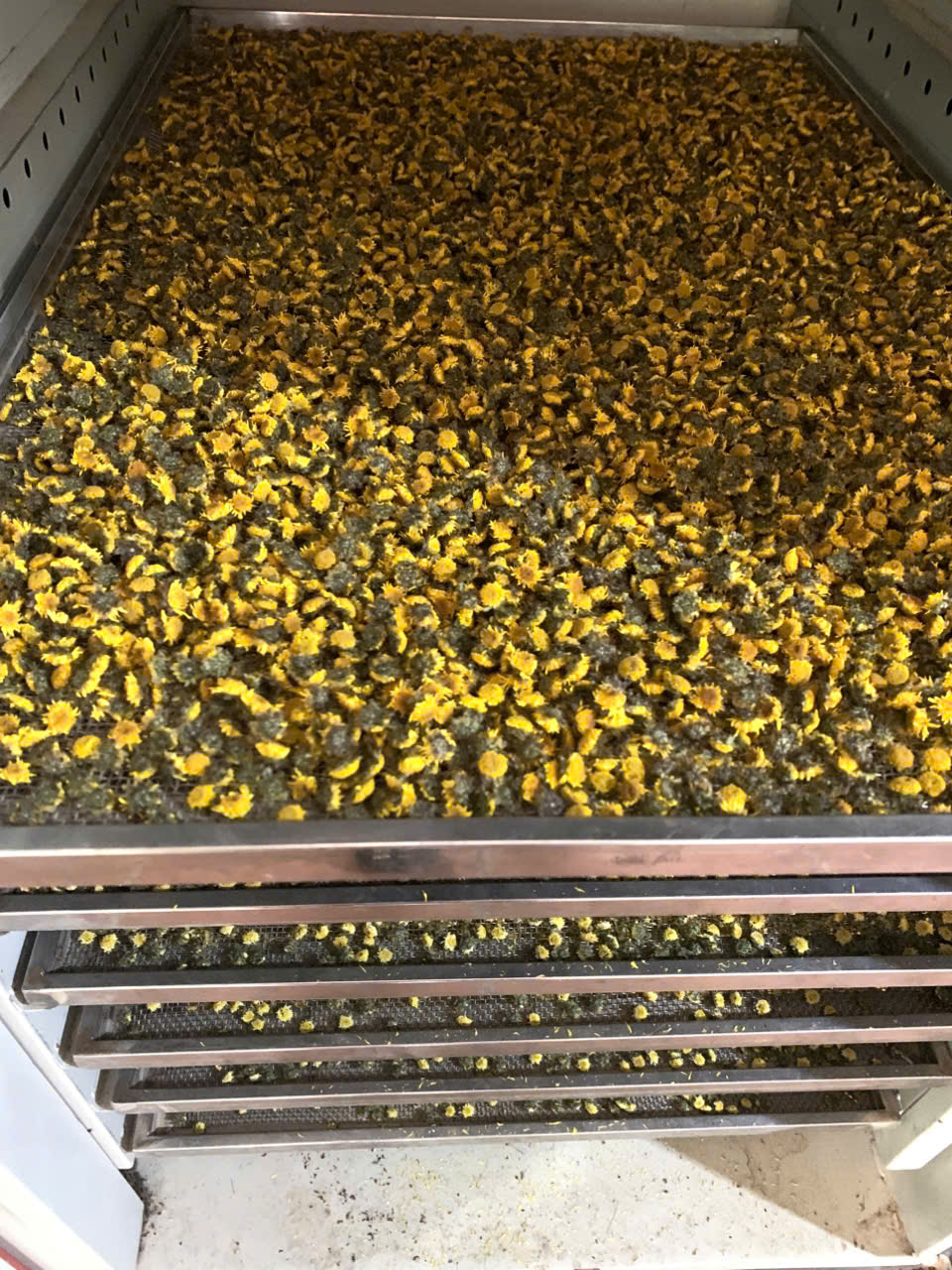 | 15 | Phơi sấy công nghiệp - Hoa cúc sau khi hái, được phơi ráo rồi đem sấy trong lò sấy để đảm bảo được màu sắc, hương vị, và dược tính nguyên vẹn. |