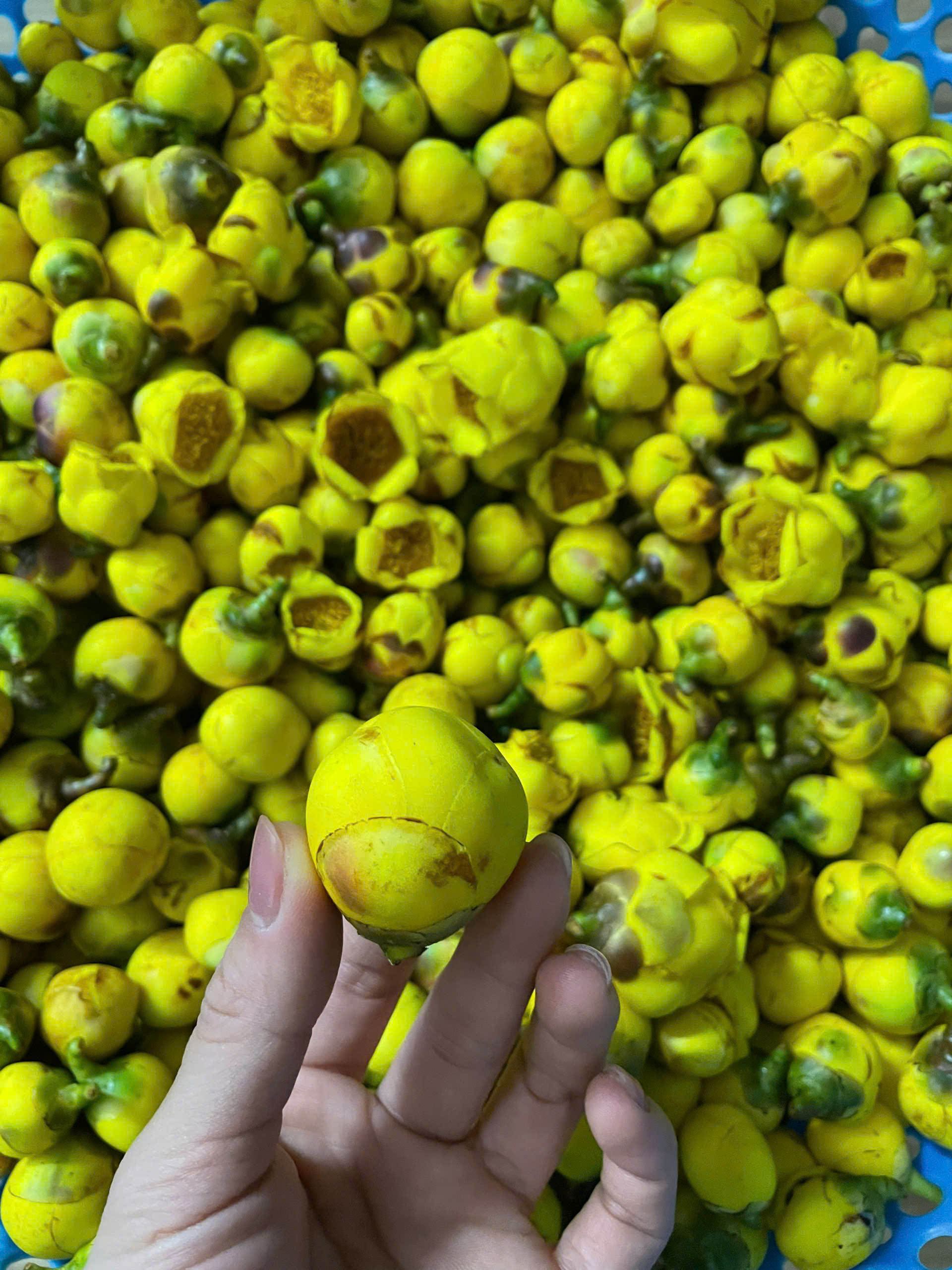 | 10 | Thu hoạch - Tận dụng thời tiết nắng nóng tiến hành thu hoạch lá của một số khu vực trồng Trà hoa vàng Hakodae. Thu hoạch thủ công bằng tay, lựa chọn lá bánh tẻ màu xanh đậm, sáng và mặt lá có độ láng, lá còn nguyên vẹn, không bị nhiễm sâu bệnh hại. . Thời tiết tại thời điểm thu hoạch: trời nắng nóng 35 - 38 độ C, nhiệt độ cảm nhận 43 độ C độ ẩm không khí 62%. Tổng khối lượng lá tươi thu được: 32.5kg |