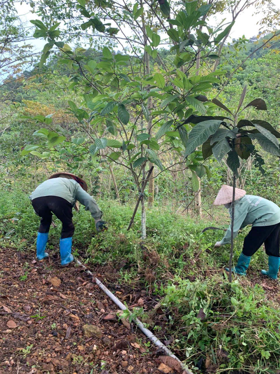 01-08-2024 12:08:00 Làm cỏ Tiến hành làm cỏ kết hợp xới xáo cho một số khu vực của vườn trà. Dọn sạch cỏ dại, thực bì quanh gốc, đường kính 1m. Hoàn thành