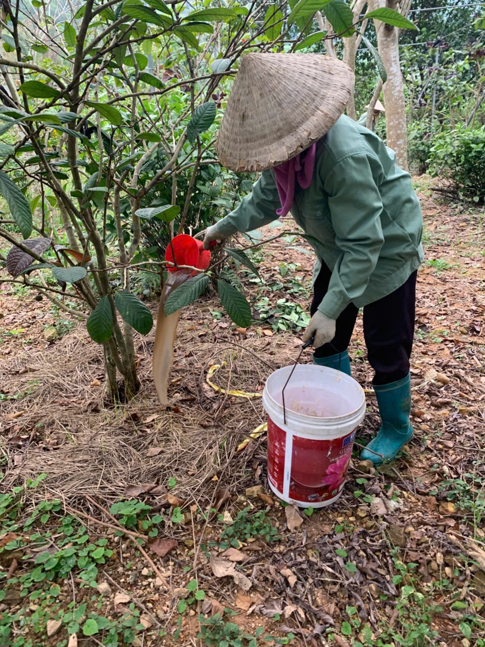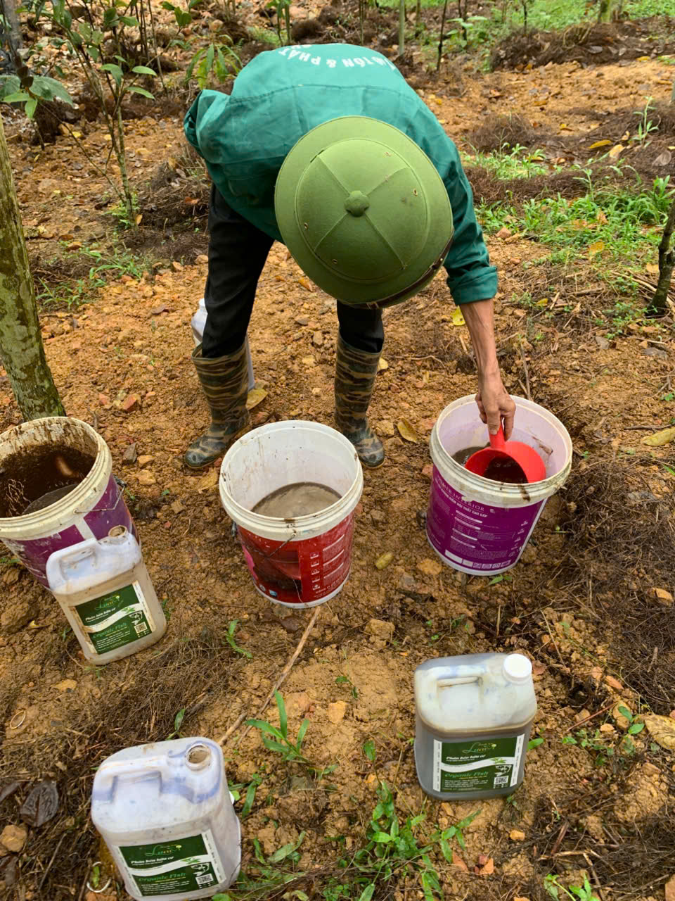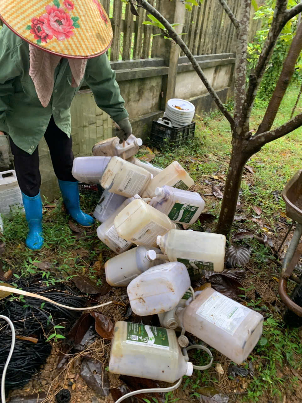 01-11-2025 12:11:00 Bón Thúc Tiếp tục bón phân cho Trà hoa vàng. Kết thúc đợt bón, tổng dung tích phân sử dụng: 100 lít (20 can 5 lít) Hoàn thành