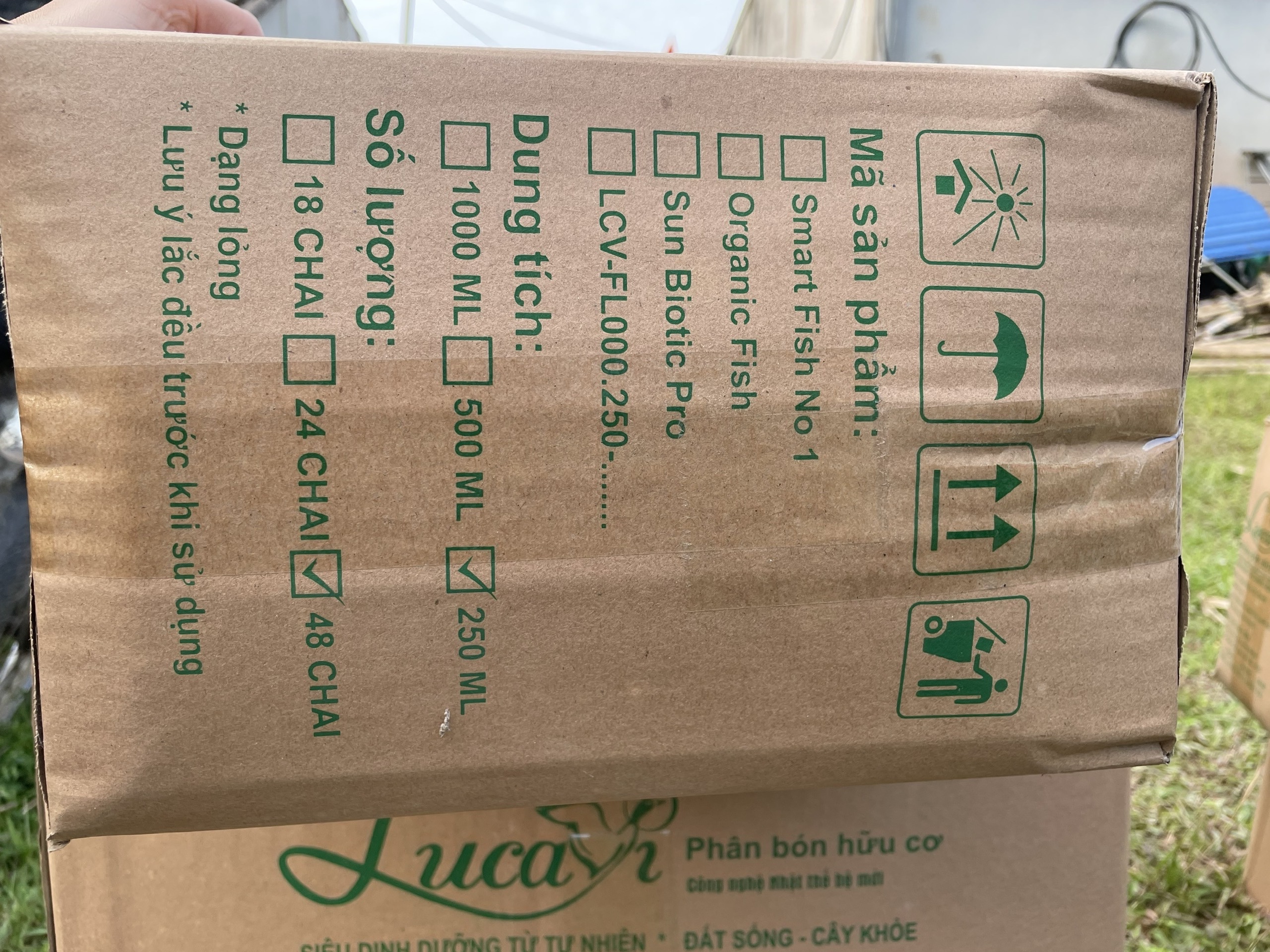 28-10-2025 12:10:00 Phân hữu cơ Nhập kho phân bón hữu cơ Lucavi. Khu 1 nhập kho 4 thùng phân Organic Fish (Thùng 4 chai 5L) tổng 80 Lít và 2 thùng Organic Fish kích nụ (Thùng 4 chai 5L) tổng 40 Lít. Hoàn thành