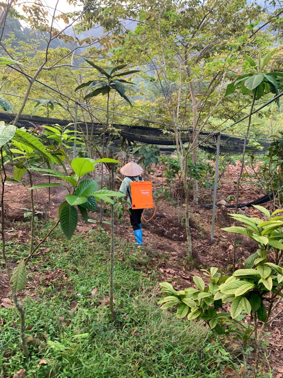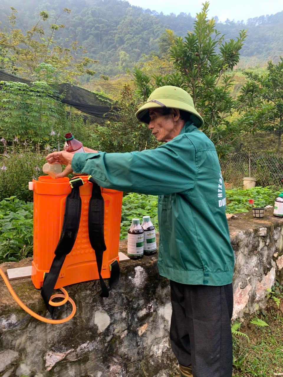 06-11-2025 12:11:00 Phòng trừ sâu Tiến hành phun chế phẩm sinh học phòng sâu bệnh, rầy rệp trong thời điểm cây trà đang bắt đầu vào mùa hoa, phun kết hợp Anisaf 01, 02 và 03. Cách dùng: pha tỉ lệ 80ml mỗi loại chế phẩm pha chung với bình 20 lít nước, tiến hành pha và phun cho toàn bộ vườn. Tổng đợt phun hết 15 bình. Hoàn thành