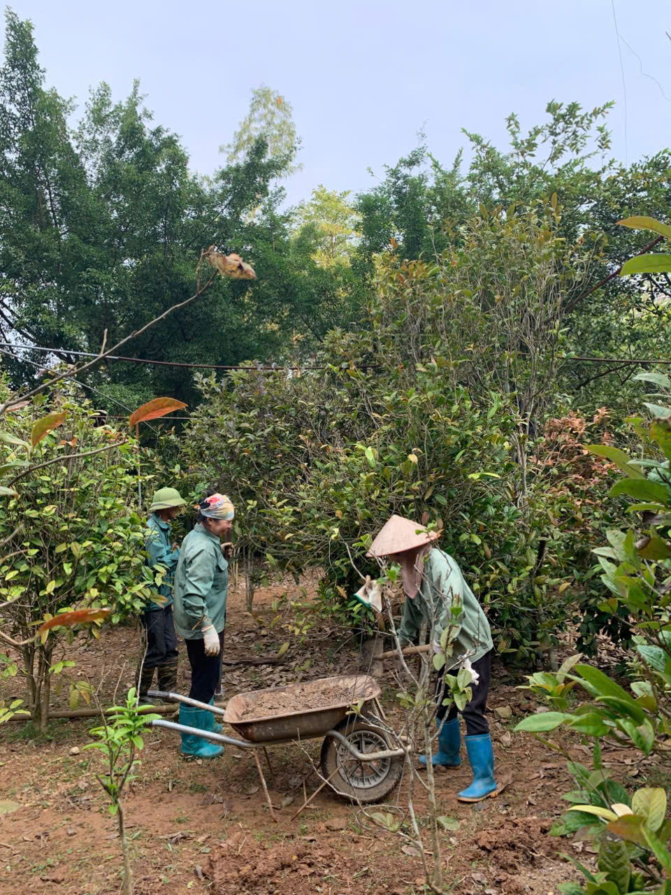 10-06-2025 12:06:00 Bón Thúc Tiếp tục tiến hành bón phân chuồng hoai mục cho các khu vực trồng cây Trà hoa vàng. Hoàn thành