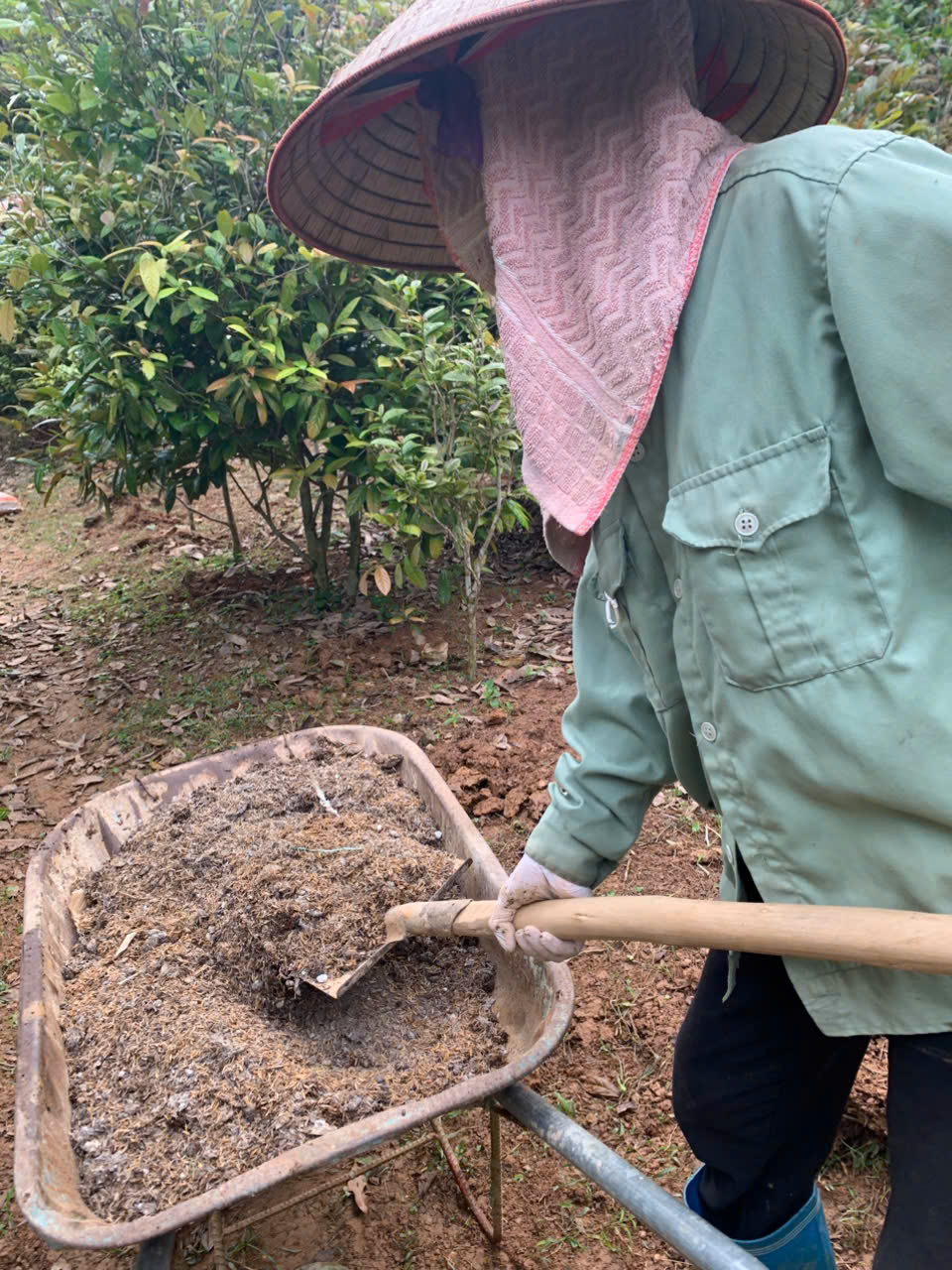17-11-2025 12:11:00 Bón Thúc Tiến hành bón phân chuồng ủ hoai mục cho một số khu vực Trà hoa vàng trong vườn. Lượng bón: 1.5 - 2kg/ cây tùy độ lớn của cây. Hoàn thành