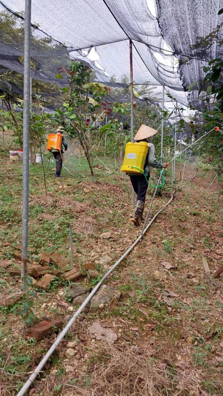 10-12-2024 12:12:00 | Bảo vệ thực vật | Tiến hành phun chế phẩm sinh học Anisaf 01, 02 và 03 để phòng trừ các loại sâu hại, các bệnh về nấm và virus gây ra cho cây. Cách dùng: pha tỉ lệ 200ml mỗi loại chế phẩm /20 lít nước phun cho toàn bộ vườn | Hoàn thành | |