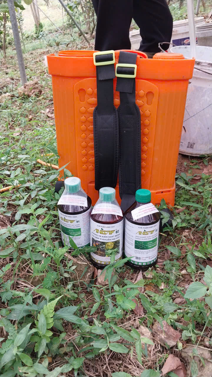 10-09-2025 12:09:00 | Bảo vệ thực vật | Tiến hành phun chế phẩm sinh học trừ sâu thảo mộc kết hợp Anisaf 01, 02 và 03 cho cây trà. Cách dùng: pha tỉ lệ 80ml mỗi loại chế phẩm 01, 02, 03 vào chung một bình phun 20ml, tiến hành pha và phun cho các khu vực đã tiến hành thu hoạch lá. | Hoàn thành | |