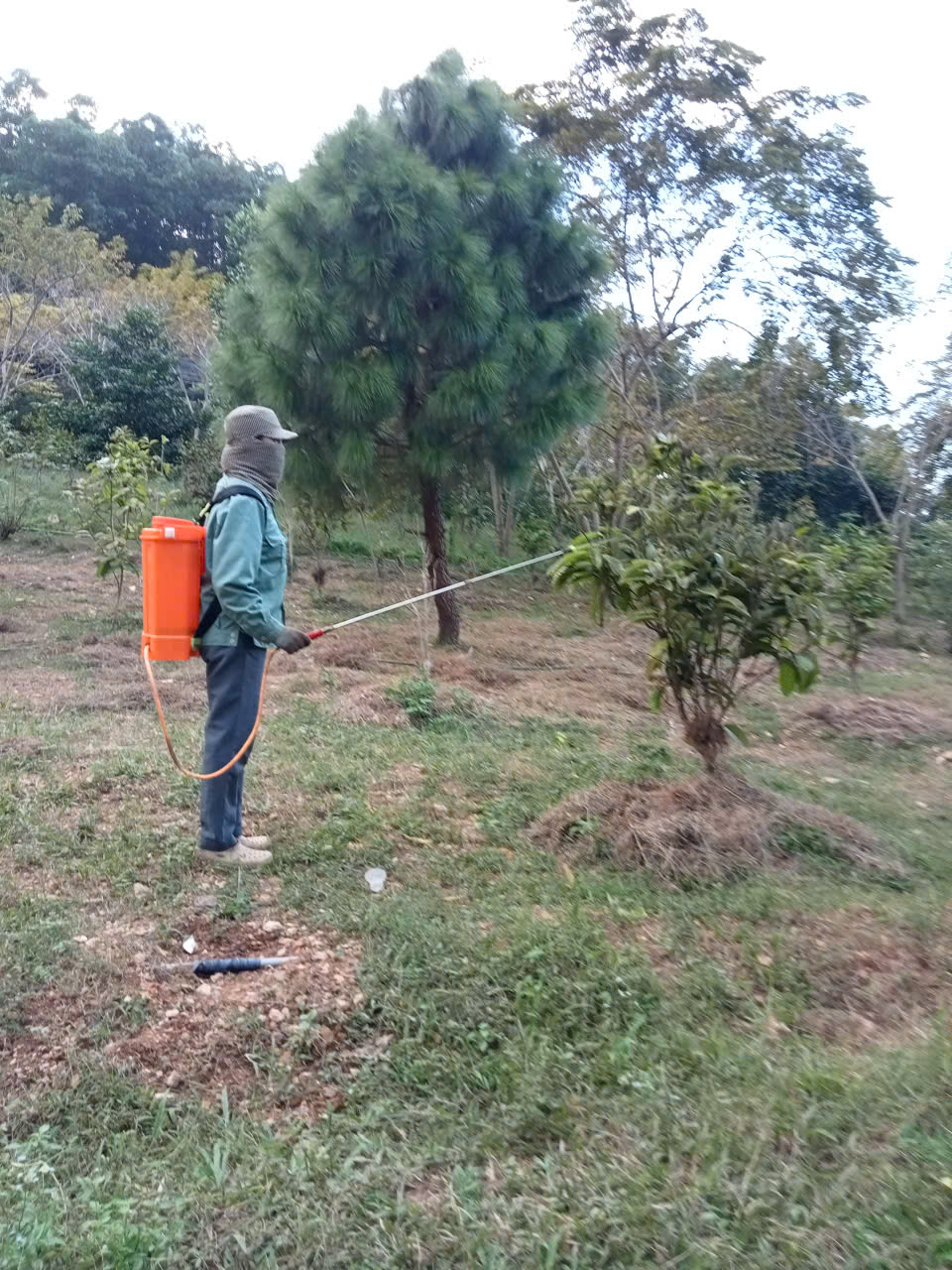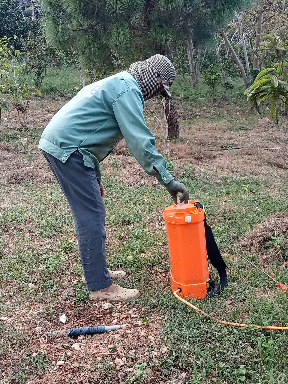 14-11-2025 12:11:00 Phòng trừ bệnh Tiến hành phun chế phẩm sinh học trừ sâu thảo mộc kết hợp Anisaf 01, 02 và 03. Cách dùng: pha tỉ lệ 80ml mỗi loại chế phẩm pha chung với bình 20 lít nước, tiến hành pha và phun cho toàn bộ vườn. Tổng 6 bình phun. Hoàn thành