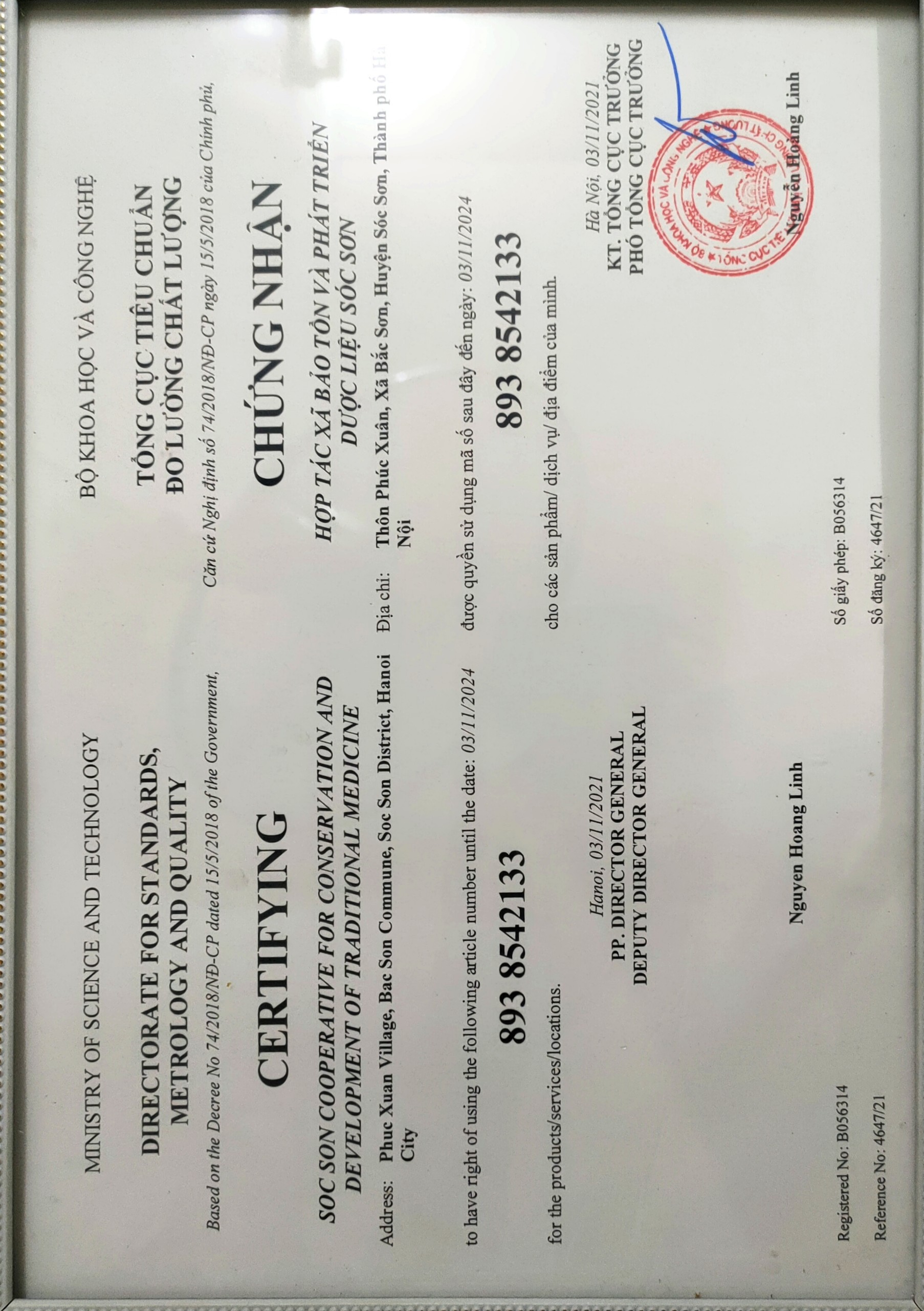 01-07-2025 12:07:00 Giấy chứng nhận Giấy chứng nhận mã số mã vạch. (Đang trong quá trình cấp lại giấy Chứng nhận mới). Hoàn thành