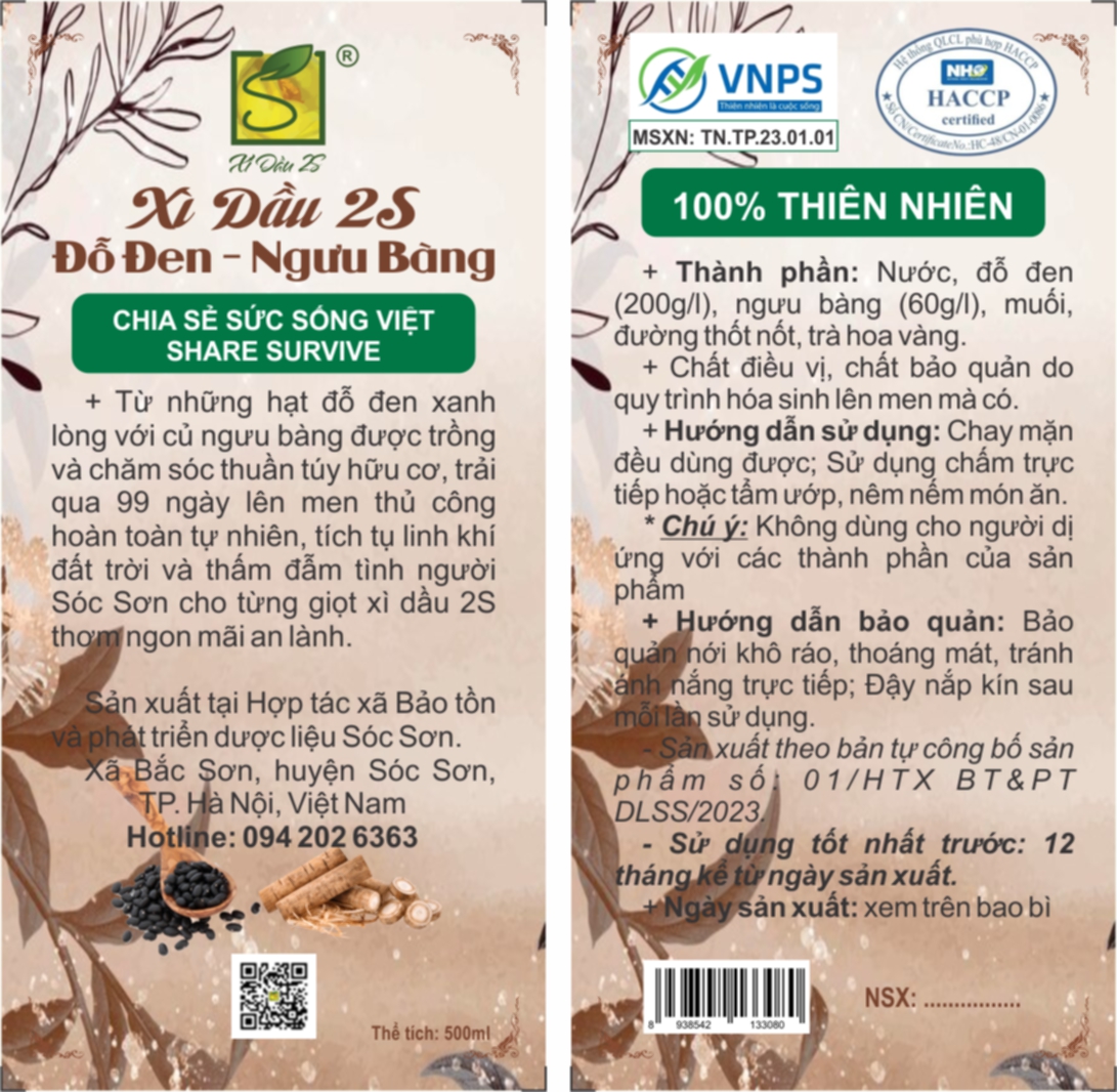 01-07-2025 12:07:00 Vùng nguyên liệu Giới thiệu về sản phẩm Xì dầu 2S Đỗ đen Ngưu bàng: Xì dầu 2S Đỗ đen - Ngưu bàng là sản phẩm lên men thủ công truyền thống kết hợp quy trình khoa học kỹ thuật ứng dụng Dược liệu vào sản phẩm. Sản phẩm chứa hoàn toàn các thành phần tự tự nhiên, không dùng chất bảo quản và các chất điều vị tổng hợp. Sản phẩm xì dầu có chất lượng tốt, có hương vị thơm ngon, phân tích cho thấy giữ các được các hoạt chất trong nguyên liệu. Xì dầu cũng chứa (sản sinh ra) các sorbate có thể bảo quản và các glutamate đóng vai trò chất điều vị. Hoàn thành