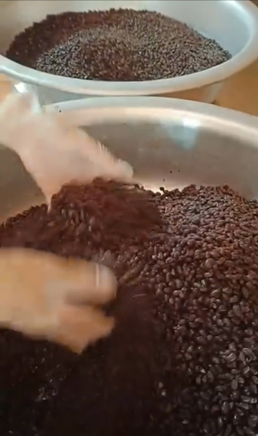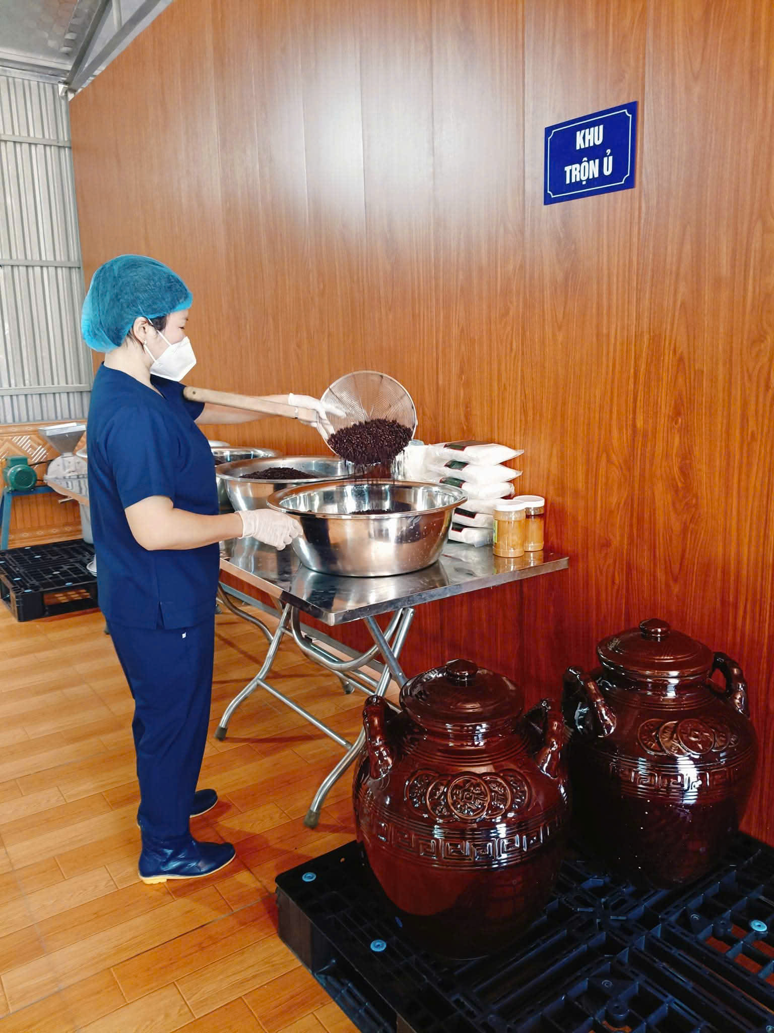 10-07-2025 12:07:00 Pha, trộn nguyên liệu / thành phần Khâu trộn các nguyên liệu thành phần trước khi đem đi ủ lên men (Củ Ngưu Bàng trước khi đem làm nguyên liệu sẽ được xay thành bột). Toàn bô quy trình đều được làm thủ công bằng tay. Hoàn thành
