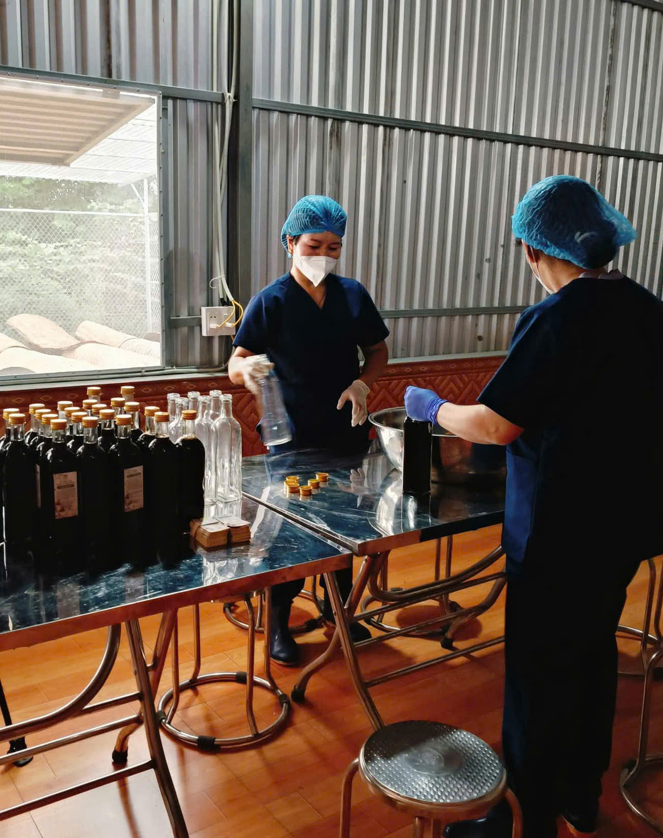 10-10-2025 12:10:00 Đóng gói, dán nhãn, tem QR Khâu đóng gói, dán nhãn, tem QR, sau khi chưng cất và nấu thành sản phẩm nước chấm Xì dầu. Hoàn thành